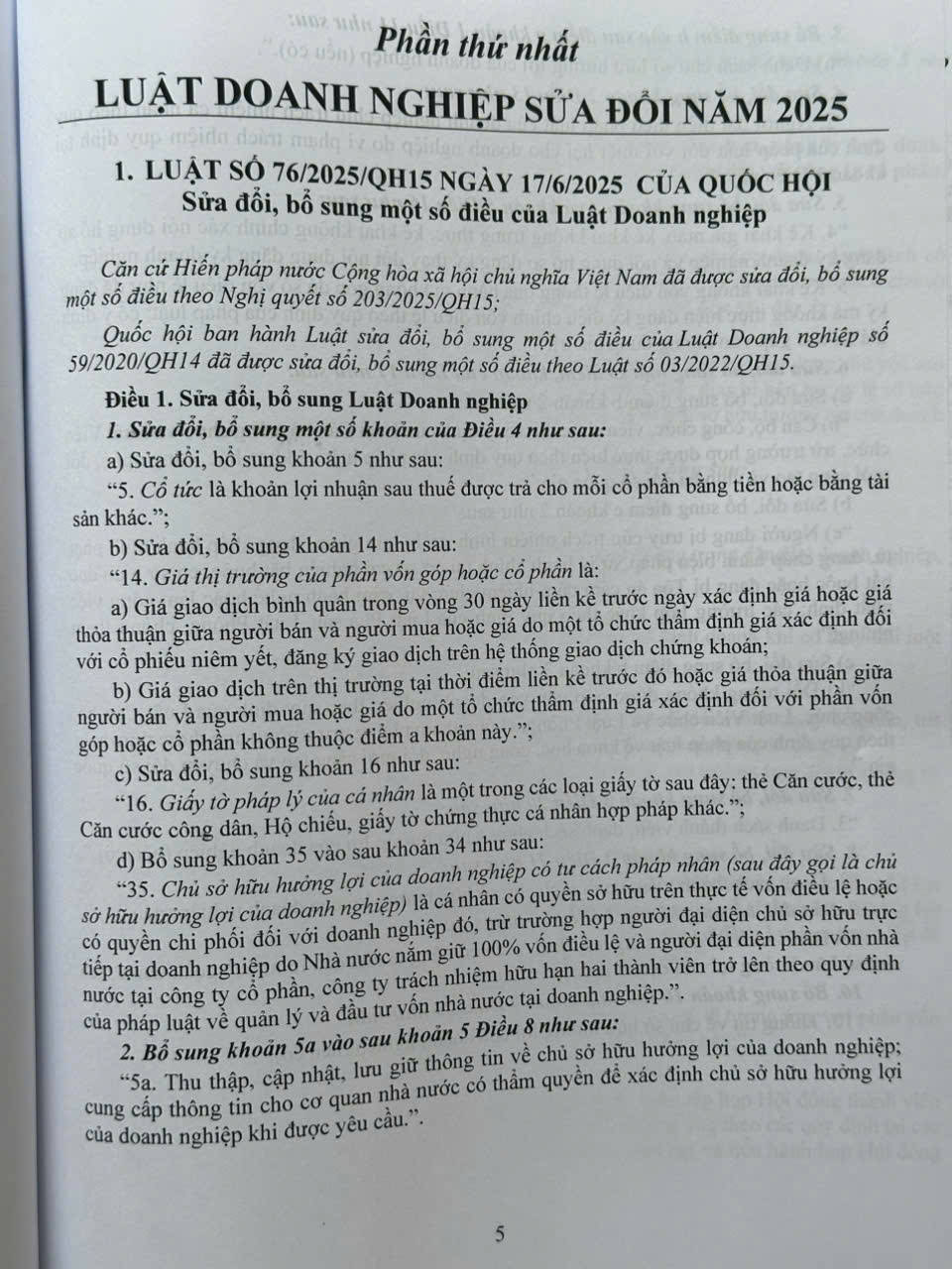 Phần thứ nhất. Luật Doanh nghiệp sửa đổi bổ sung năm 2025