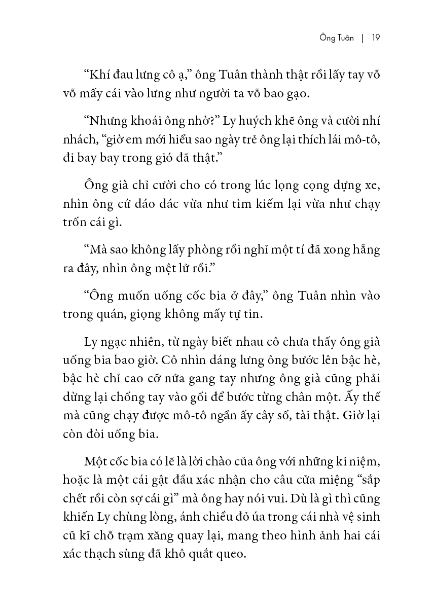 Chuyện bắt đầu từ một cái toilet hỏng, một đêm đông lạnh, một ông già sống một mình, và một cô gái làm nghề đứng đường. Hai người lạ gặp nhau không vì duyên số, không vì tình yêu, cũng chẳng vì một mục đích rõ ràng. Họ chỉ đơn giản là… đi cùng nhau, vì không ai muốn tiếp tục đi một mình. Câu chuyện không có cao trào, không có bất ngờ. Nhưng chính sự lặng lẽ đó lại tạo nên một không gian rất riêng, nơi những chi tiết tưởng như vụn vặt lại trở thành kí ức. Tác giả không cố làm cho mọi thứ trở nên “đáng kể”, và chính vì thế, truyện trở nên đáng nhớ.