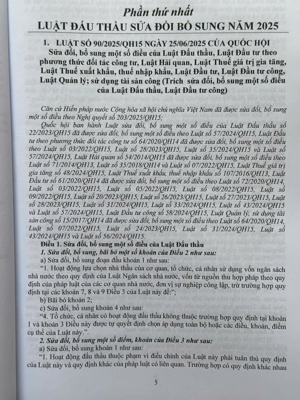 Phần thứ nhất. LUẬT ĐẤU THẦU SỬA ĐỒI BỔ SUNG NĂM 2025