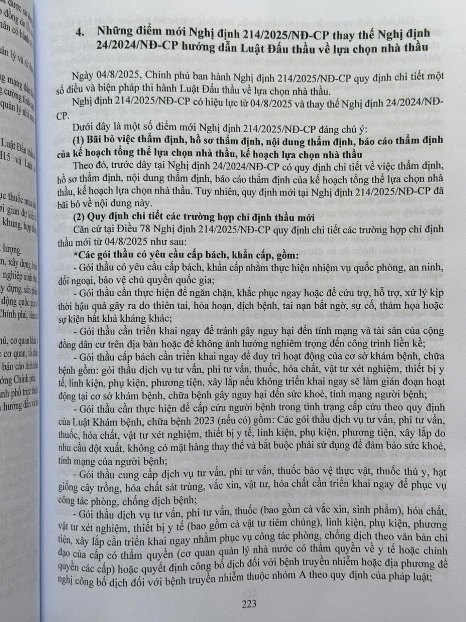 Ngày 04/8/2025, Chính phủ cũng ban hành Nghị định số 214/2025/NĐ-CP Quy định chi tiết một số điều và biện pháp thi hành Luật Đấu thầu năm 2023 về lựa chọn nhà thầu.
