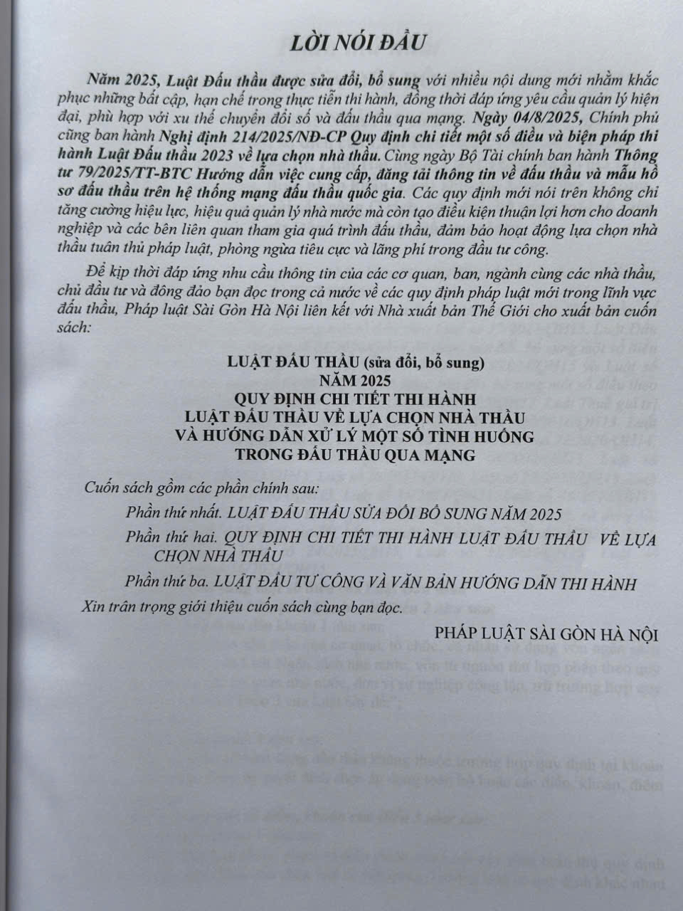Nhằm giúp các bên mời thầu, nhà thầu, các cán bộ quản lý, chuyên gia tư vấn, nhà nghiên cứu nắm bắt kịp thời các quy định mới nêu trên, hạn chế sai sót, đồng thời nâng cao tính chuyên nghiệp của các chủ thể tham gia đấu thầu, Nhà sách Nam Việt xin trân trọng giới thiệu cuốn sách: Luật Đấu Thầu sửa đổi, bổ sung năm 2025 – Quy Định Chi Tiết Thi Hành Luật Đấu Thầu Về Lựa Chọn Nhà Thầu Và Hướng Dẫn Xử Lý Một Số Tình Huống Trong Đấu Thầu Qua Mạng (Thông tư số 79/2025/TT-BTC)