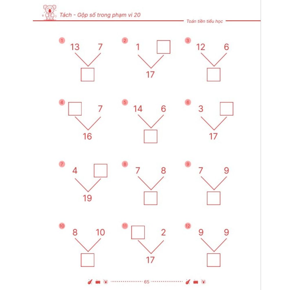 SÁCH - TÁCH GỘP SỐ TRONG PHẠM VI 20 - GIÚP CON TỰ TIN VÀO LỚP 1 - BỘ SÁCH TOÁN TƯ DUY CHO BÉ TỪ 4 ĐẾN 8 TUỔI
