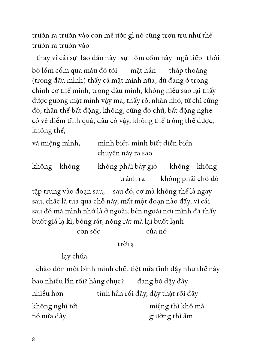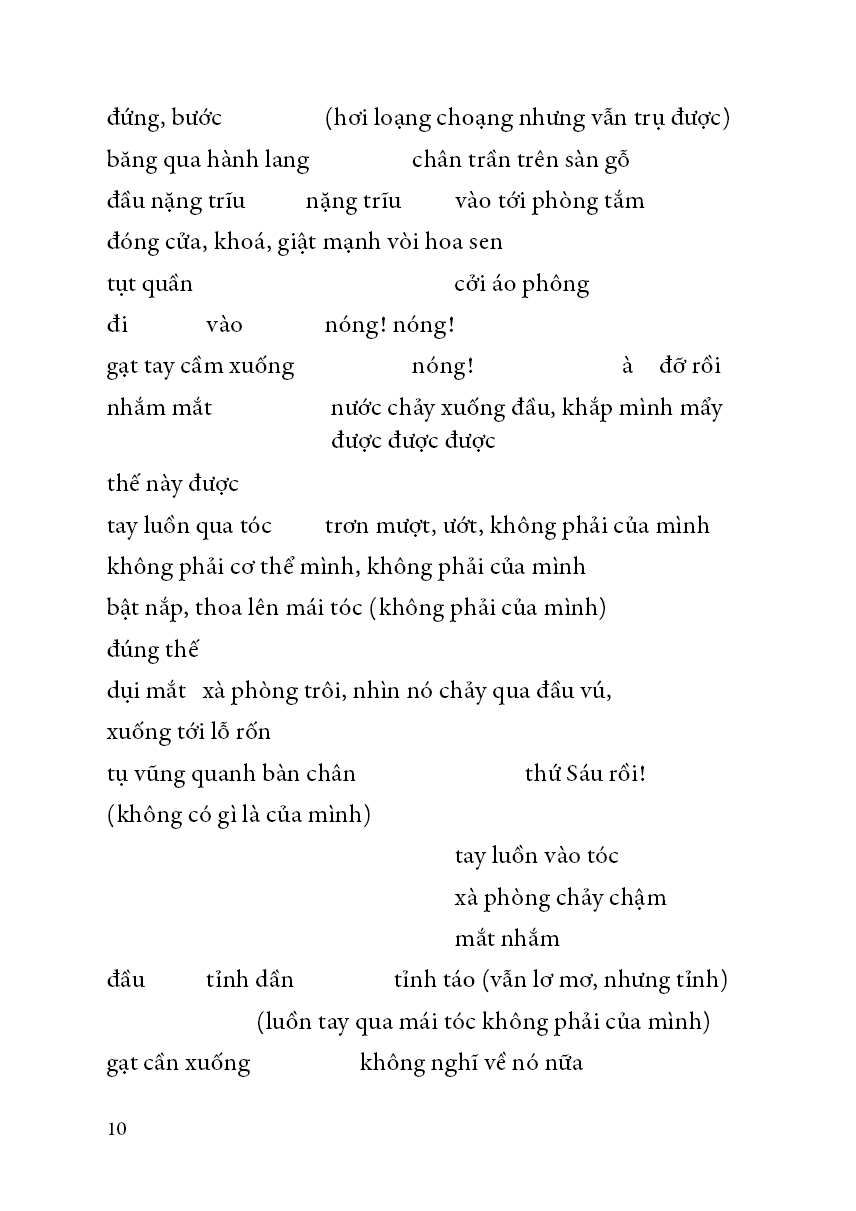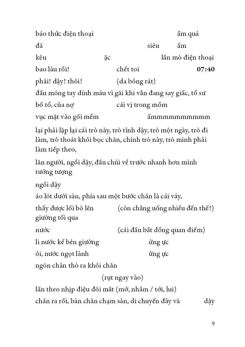 Tác phẩm là hành trình song song giữa sự tồn tại bên ngoài và đổ vỡ bên trong, nơi những “vết xước” nhỏ bé của đời sống dần bộc lộ sức nặng khủng khiếp của chúng.